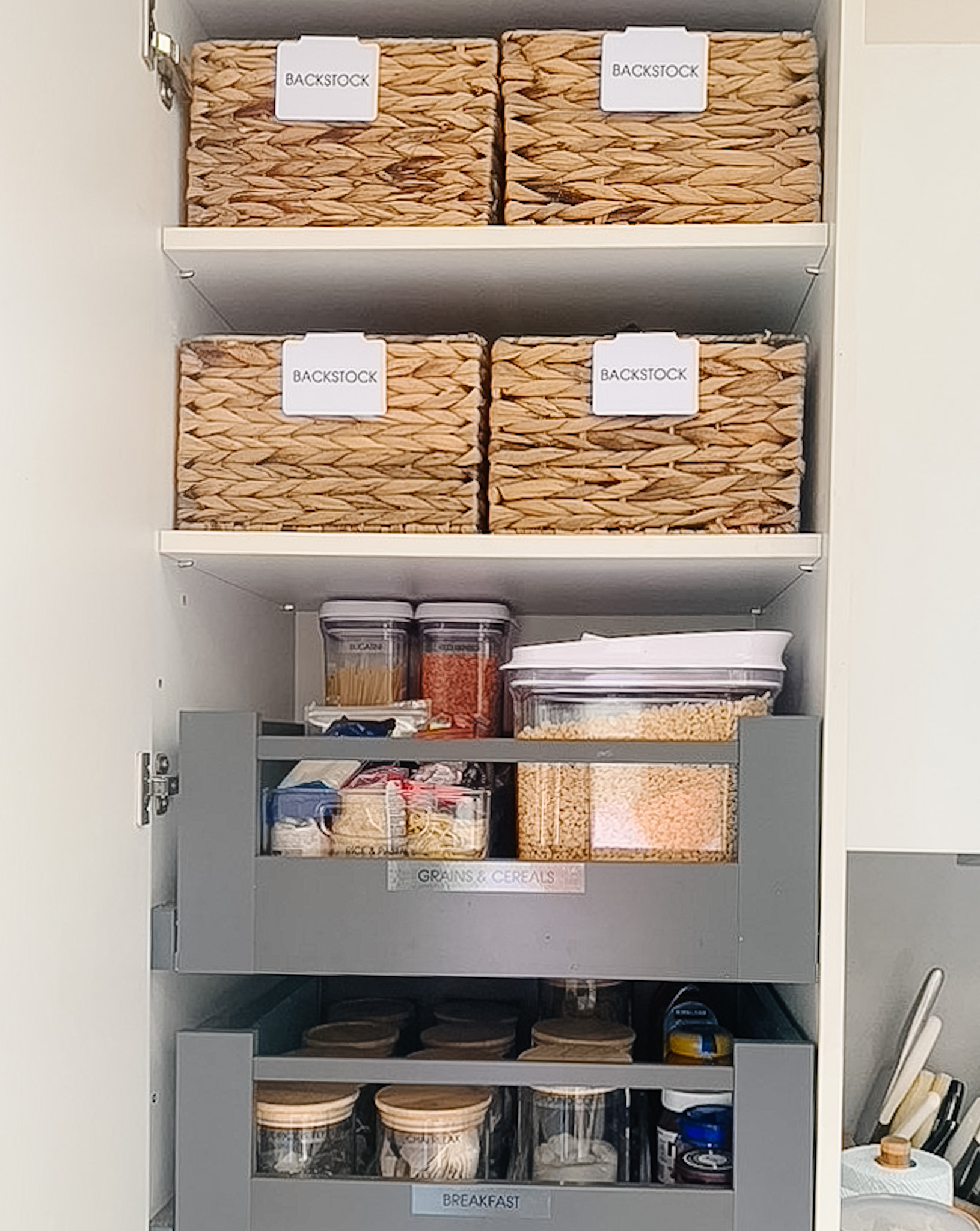 As a keen baker, our client had a lot of ingredients scattered all over the kitchen and needed an area where she could store them all together. She was also about to have her second child and wanted more defined zones in the kitchen to make daily tasks easier for the whole family.