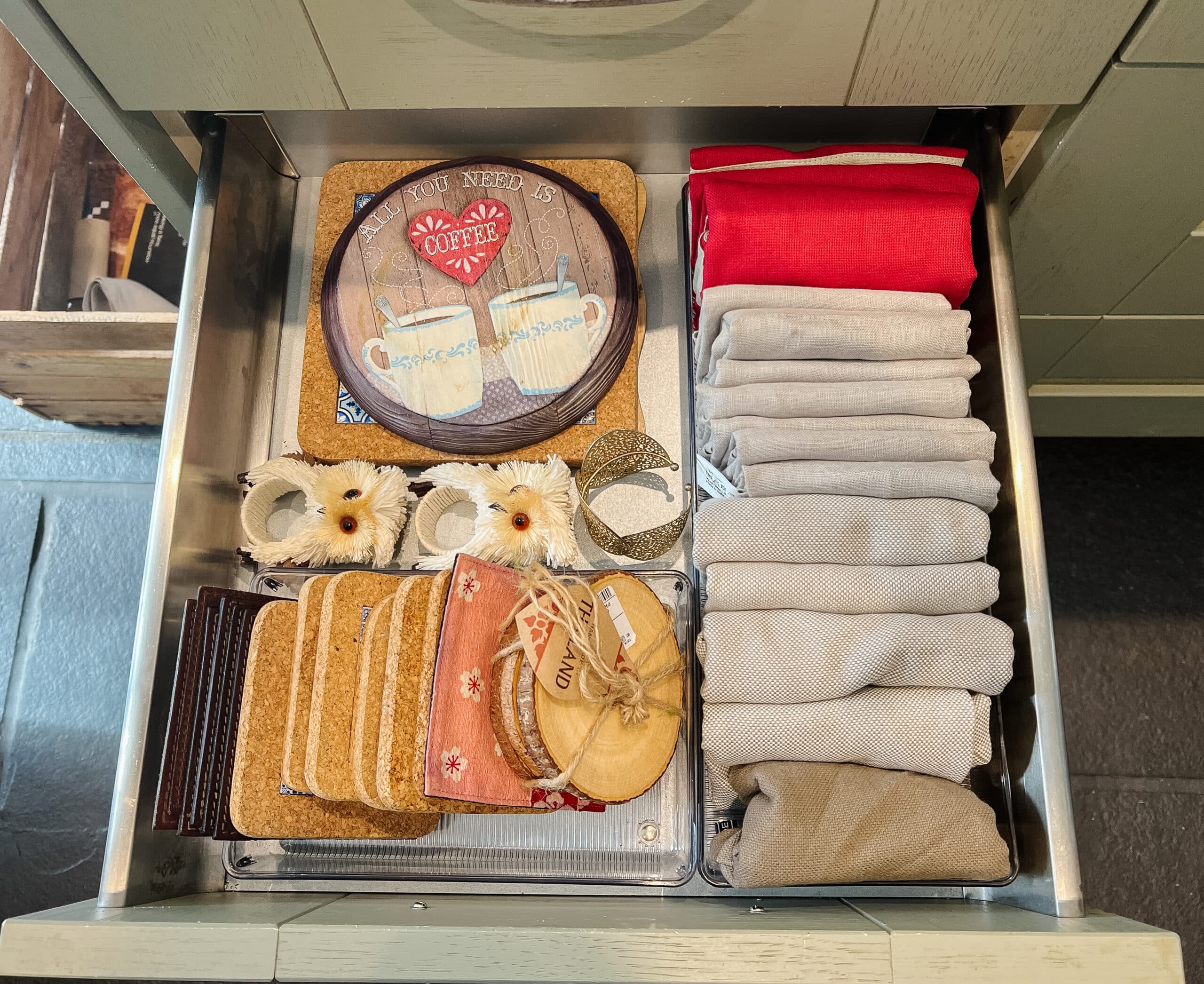 We reorganised the utensils and added drawer inserts to divide the categories and make items easier to locate when cooking.