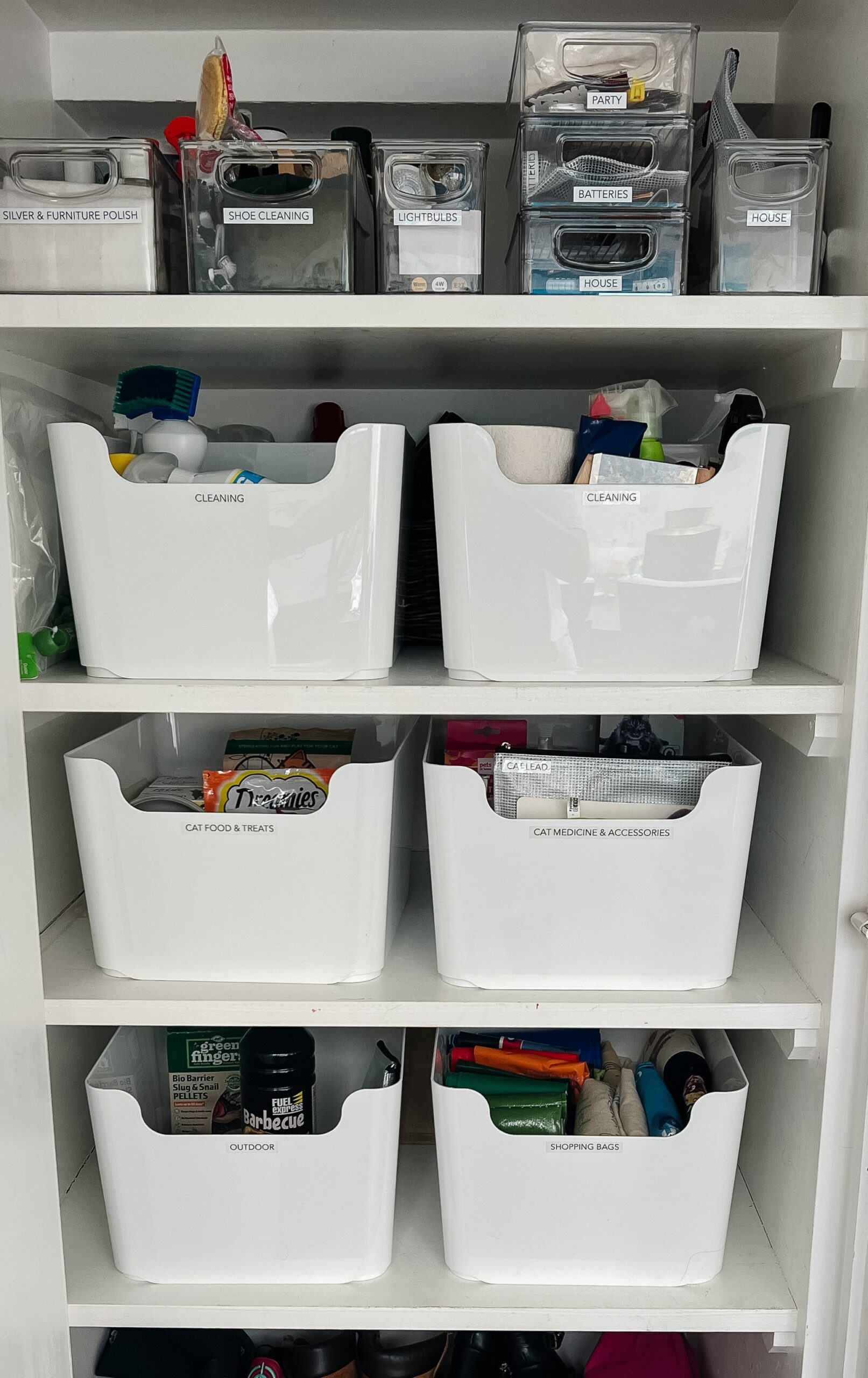 of the ingredients in zones, to create more structure. The shelves were very deep so using pantry boxes kept ingredients from getting lost on the shelves.