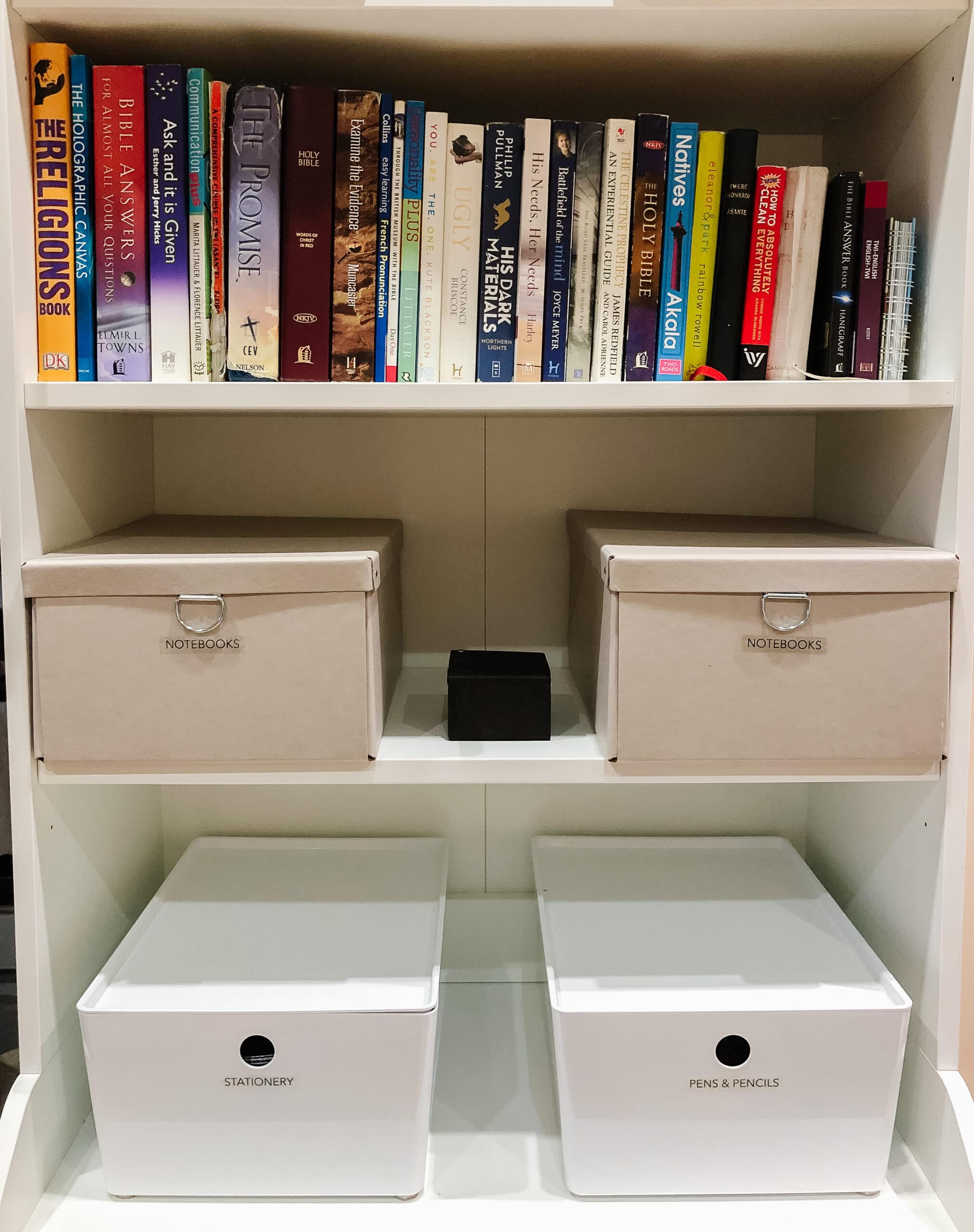 To create the paperwork system, we used labelled file boxes so our client could separate new and old paperwork and find important documents easily.