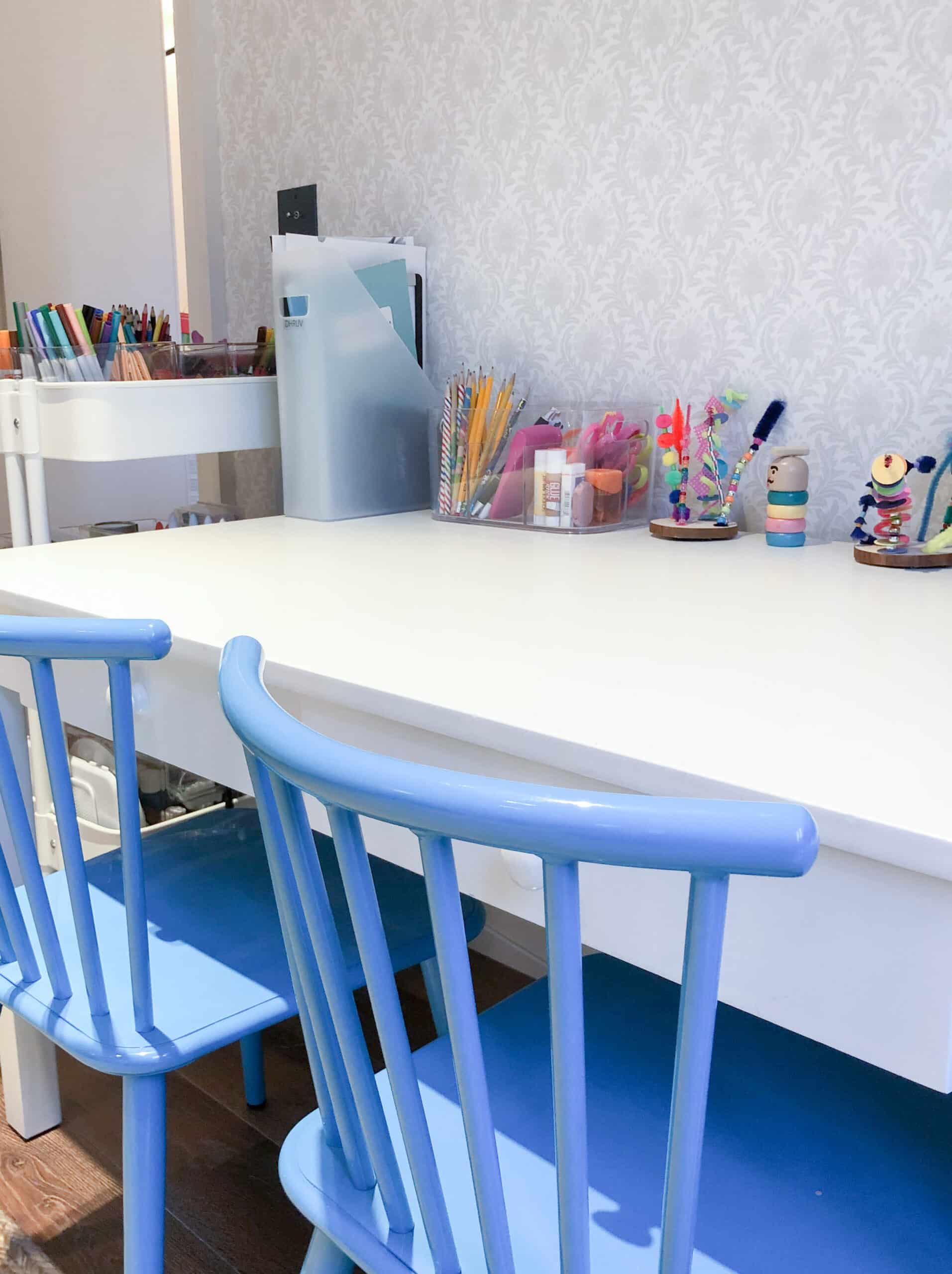 Her young children are keen crafters and she wanted to create a calm, clutter-free and space for her twins which could also be used as a cosy chill area for the family’s movie nights.